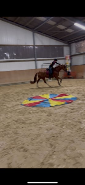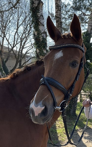 Elegant Westphalian mare, born in 2020, with an attractive chestnut coat, impresses with her graceful appearance and balanced temperament. Standing at 16.1 hh, she offers the perfect size for ambitious dressage riders who value quality and willingness to perform. This well-ridden and talented mare already shows promising potential in dressage and has a solid basic training. She is friendly in handling, eager to learn, and possesses a pleasant character, making her suitable for both competition advancement and leisure riding. Her elegant presence, combined with her good fundamental qualities, makes her a promising partner for dedicated riders seeking a reliable dressage partner. A horse that deserves attentive development and holds great potential for the future.