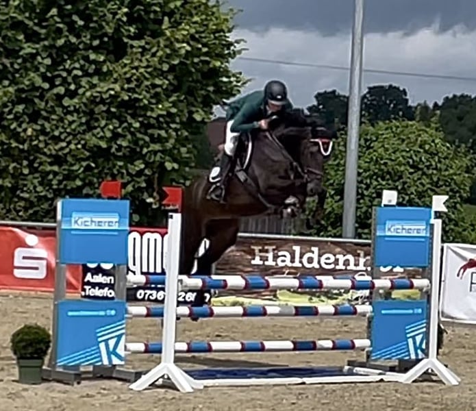 Zum Verkauf steht eine 6 jährige Westfalen-Stute mit Top Abstammung (Cornet Obolensky x Polydor). Diese wunderschöne schwarzbraune Stute wurde im Jahr 2019 geboren, schonend ausgebildet und dem Alter entsprechend auf Turnier vorgestellt. Mit ihrer Einstellung, ihrem Ehrgeiz und ihrer Vorsicht ist sie ideal für den Springsport geeignet. Sie hat Springpferde A gewonnen und ist Springpferde L platziert. Sie zeigt viel Talent im Parcours, ist allerdings auch mit viel Zug zum Sprung und Ehrgeiz ausgestattet und somit kein Pferd für Springeinsteiger oder unerfahrene Reiter. Ihr freundliches und menschenbezogenes Wesen ist aussergewöhnlich. Bei Interesse stehe ich gerne für weitere Informationen und eine Besichtigung zur Verfügung. Kontaktieren Sie mich, um mehr über dieses vielversprechende Pferd zu erfahren!