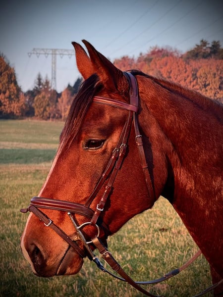 Zum Verkauf steht eine in 2019 mit ca. 160cm Stockmaß geborene Westfalen Stute von Diamond Deluxe. "Die Eine oder Keine" kurz "Dieda" kam als Absetzer auf unseren Betrieb und wurde 4-jährig schonend angeritten. Mit 3 schönen GGA besticht sie durch ihre Unerschrockenheit in ihrer braunen Jacke sowohl im Viereck, als auch am Sprung. Durch ihre sensible Art ist sie für unseren Schulbetrieb mit stetig wechselnden Reitern leider nicht geeignet und sucht nun ihren Menschen, wo sie an erster Stelle steht. Im täglichen Umgang zeigt sie sich sehr Menschenbezogen und freut sich über jede Art der Beschäftigung. Derzeit steht sie im Herdenverband mit Stuten und Wallachen im Offenstall. Dieda kennt 24h Weide,- als auch Boxenhaltung.