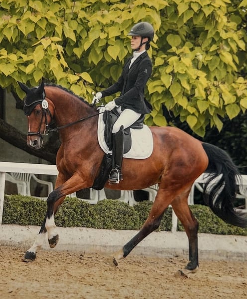On behalf of the owner, a truly enchanting 7-year-old chestnut mare is available for sale, ideal for the higher-level leisure rider. She is regularly ridden at training levels A and L, and is familiar with all exercises of the L class. She is farrier- and loading-friendly, and has experience in indoor arenas, on the outdoor ring, and in the field—knowing all situations a horse should be accustomed to. She has been fully vaccinated and is in excellent health. We would love to sell this mare for much more as a top sporthorse, but unfortunately, she simply does not want to be one. She is perfectly happy to work, but she much prefers a day off 😂🙈. It’s also completely fine to compete in a simple dressage test at A level from time to time, but she doesn’t help with that… The mare is always well-behaved—no rearing, bucking, or bolting. She never acts against the rider, but she also doesn’t go above and beyond for the rider during sport. Her owner would like to start competing at M and S levels, but unfortunately, this horse is not suitable for that so far. Therefore, we are seeking a new home where either “everything is better” or where the expectations of a higher-level leisure horse are simply met. If you have any questions, please don’t hesitate to contact us. Trial rides are available seven days a week. A fee of €40 applies for the trial ride.