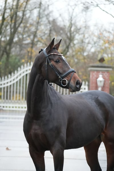 This young mare impresses not only with her attractive appearance but also with her potential in dressage. Her three good basic gaits, combined with her high motivation and willingness to learn, make her an ideal partner for ambitious riders aiming for success in dressage competitions. A recent very good TUV, including back and neck X-rays, is available. Zakaria was gently backed two years ago and has shown remarkable development over the past year. Currently, we are training her playfully in lateral movements and flying changes. She enjoys her training sessions immensely and consistently demonstrates a eager and motivated attitude. Zakaria has placed in her dressage horse class L and is ready for M level competitions in the upcoming season. To provide variety to her dressage training, we take her out on rides in the field, on the racetrack, or train her on the double longe. She is also familiar with pole work and jumping. If you are looking for a talented and reliable horse that will bring you great joy in the dressage arena, this Westphalian mare could be the perfect match for you. Please feel free to contact me for more information or to arrange a viewing!