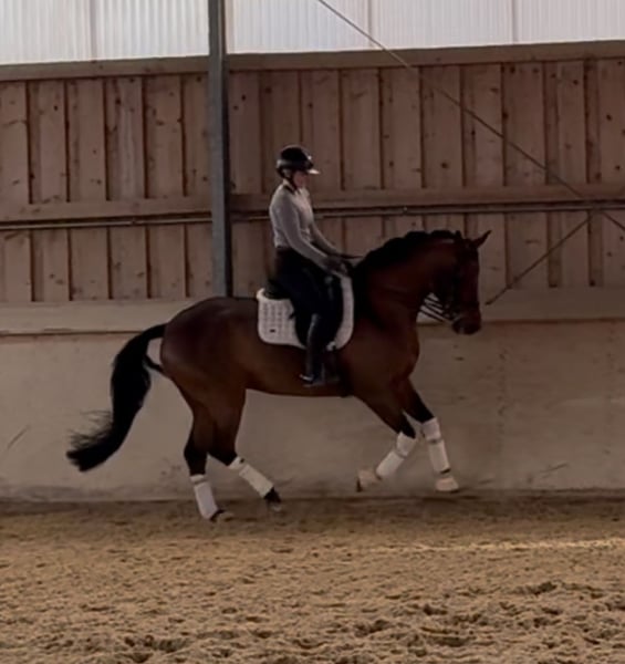 This very attractive, lovable, and people-oriented mare impresses with her balanced temperament, pleasant rideability, and her qualities as a riding and training horse. She offers three very good basic gaits, is easy to collect through the reins, sits comfortably, and consistently provides the rider with a secure and confident feeling. In training, she proves to be uncomplicated—neither sensitive to noises nor spooky—she moves forward well and works harmoniously. She already reliably performs flying changes, and in a second video, we also show her lunged with side reins, where she presents herself as equally well-behaved and focused. Thanks to her calm, friendly, and completely reliable nature, she is not only a pleasant partner for the ambitious dressage rider but also ideally suited for: - Beginners who want to learn to ride safely - Children in need of a gentle and dependable horse - Re-entrants seeking a trustworthy feeling - Adults looking for a well-trained, easy-to-ride horse Due to her good training, the rider can learn a great deal from her, while she remains patient, honest, and cuddly at the same time. She loves grooming, walks, and being close to humans. Additionally, she has an excellent pedigree—her sire Benicio, known for rideability, willingness to perform, and outstanding movement quality, influences her lineage. As a result, she combines sportiness and quality with a particularly lovable, balanced nature, making her a true all-rounder. Location: Rosenheim A trial ride costs €30, including expert, qualified guidance. This amount will be fully credited towards the purchase price if you decide to buy her later. If you are interested or have any questions, please feel free to contact us by phone or WhatsApp at any time.