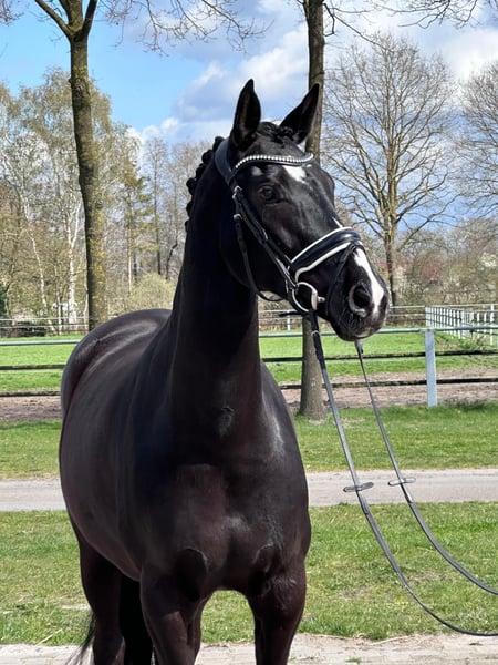 Zum Verkauf steht eine elegante und ausdrucksstarke 7-jährige Rappstute( Glanzrappe) mit dem Namen Fame and Glory, geboren am 19.Mai 2019. Die Sute überzeugt durch ihre hochinteressante Abstammung: Vater ist der Oldenburger Prämienhengst Follow Him‘s Schönweide, die Mutter eine Staatsprämienstute San Amore HB. Aus diesem leistungsstarken Mutterstamm sind bereits mehrere gekörte Hengste sowie prämierte Stuten hervorgegangen.Auch Fame and Glory selbst stellte im vergangenen Jahr ein sehr typvolles, korrektes und prämiertes Rapphengstfohlen vom Hengst So Perfect. Mit ihrem Stockmaß von ca. 168 cm bringt sie eine imposante Erscheinung mit.Sie besticht durch: •eine wundervolle Ausstrahlung •ausdrucksstarke, elastische Bewegungen •sehr gute Grundgangarten (Schritt, Trab und Galopp) Ausbildungsstand: •Dressurklasse A- turnierfertig •bereits Turniererfahrung vorhanden •aktuell in professioneller Förderung bei einer Ausbilderin bis Klasse S „Fame and Glory“ ist eine talentierte, leistungsbereite Stute mit viel Potenzial für den weiteren sportlichen Weg sowie für die Zucht. Bei ernsthaften Interesse freuen wir uns über Ihre Kontaktaufnahme.