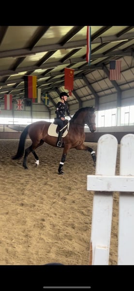 Helaas hebben we onze Soleil uit de sport moeten halen (eerlijke informatie graag persoonlijk bij serieuze interesse). Eind maart heeft ze probleemloos een prachtig veulen gekregen van Spotilas, dat ik hier ook heb aangeboden. De merrie is braaf in omgang en vriendelijk naar mensen toe. Ze heeft voor het eerst een inseminatie gehad en is nu geïnsemineerd door Oranje (Decktstation Martin Determann). Ik geef deze prachtige merrie wegens leeftijdsredenen alleen in de allerbeste handen.