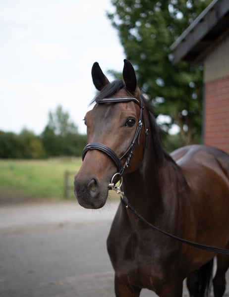 Met pijn in het hart verkoop ik mijn 7-jarige Westfaalse merrie, omdat ik niet in staat ben om harmonie te vinden in onze rijdersrelatie. In 2022 heeft ze haar merrieprestatieproef met een gouden medaille afgerond en staat ingeschreven in het stamboek I. Vanwege haar goede afstamming is ze bijzonder interessant voor de fokkerij en heeft ze al een veulen gehad. De merrie is zeer gevoelig. Onder het zadel toont ze zich momenteel moeilijk, daarom wordt ze uitdrukkelijk uitsluitend als fokmerrie verkocht. In de dagelijkse omgang is ze lief en makkelijk in de omgang, klink- en laadvaardig en kent ze het normale stalleven. Ik hoop dat ze een passend, waarderend thuis vindt waar men haar met geduld en begrip benadert en haar kwaliteiten weet te waarderen.