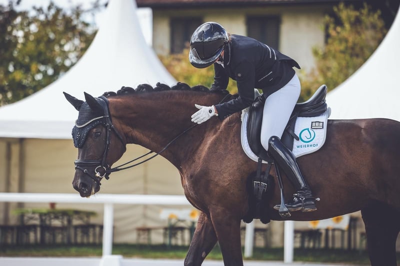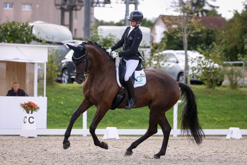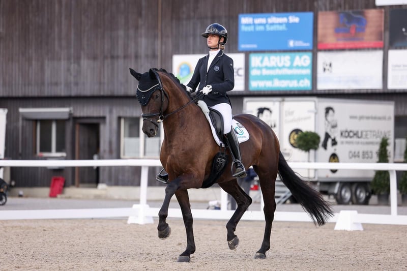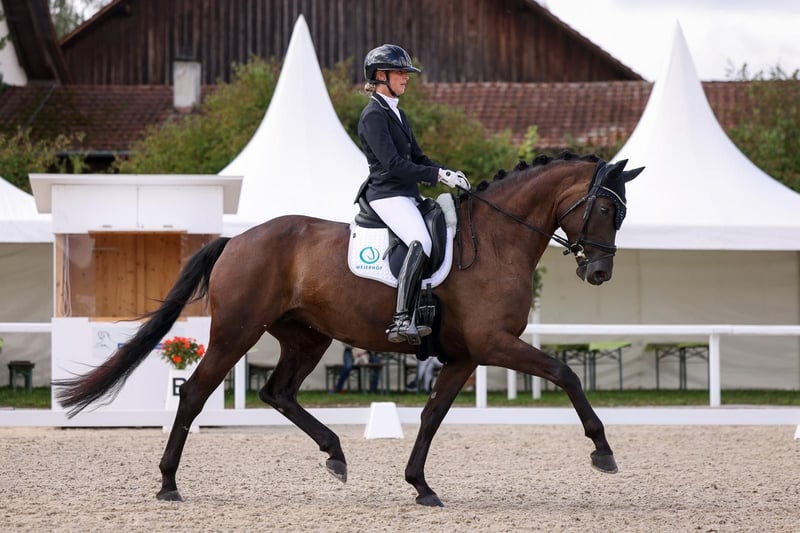 8-letnia klacz Millennium – Dante Weltino – Fidertanz – Donnerschwee Carissima została osiodłana w wieku 6 lat i wcześniej miała dwa źrebaki. Jest pewna w terenie (również sama), bez problemu daje się załadować i jest kowalsko grzeczna. Obecnie jest w pełnym treningu u Andriny Suter i jest prezentowana na zawodach na poziomie L (z miejscami na podium). Więcej informacji chętnie udzieli bezpośrednio Andrina Suter pod numerem +41 78 695 65 00.