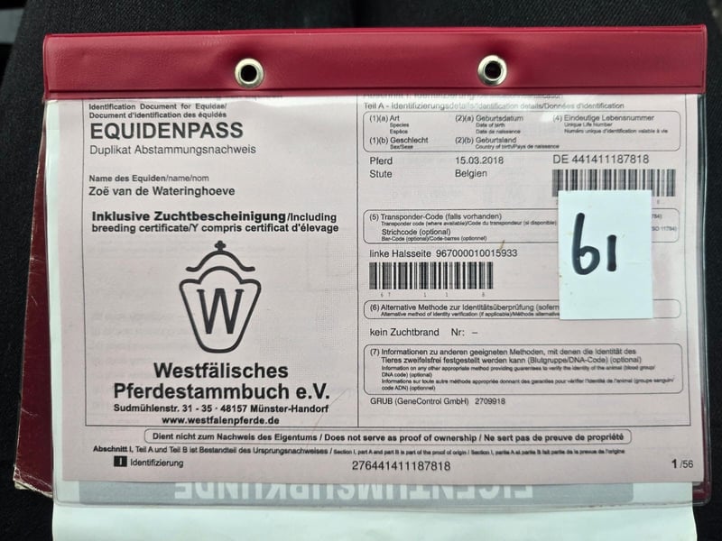 Uncomplicated Dressage Mare (2018) – Lots of substance and a lovely temperament Beautiful, correctly conformed mare born in 2018, with an approximate height of 16.1 hh and plenty of substance. Pedigree: Sire: Zoom (Zack x Don Schufro) Dam: Romanov Blue Hors x Weltmeyer II This mare has a very calm and straightforward temperament. She is neither sensitive nor spooky, making her easy to handle and ride. She has already produced foals and is currently in training under saddle. Thanks to her pleasant disposition and interesting bloodlines, she is suitable for both sport and breeding. Features: • Mare | 2018 • Approx. 16.1 hh • Plenty of substance • Honest and reliable character • Not spooky or sensitive • Has produced foals • Currently in training under saddle 📍 More information, photos, and videos available upon request. Oud Gastel, NL