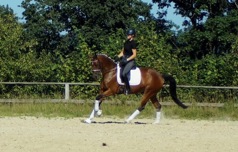 **Verkoopadvertentie: Mooie Westfaalse merrie** Een charmante Westfaalse merrie, geboren in 2017, is te koop. Deze elegante bruine merrie meet 165 cm en maakt indruk met haar uitstekende dressuurkwaliteiten. **Kenmerken:** - Ras:** Westfaals - Geslacht:** Merrie - Geboortejaar:** 2017 - Kleur:** Bruin - Schofthoogte:** 165 cm - Dressuur Deze getalenteerde merrie is altijd gemotiveerd en bereid om te leren. Ze heeft een solide basisopleiding en maakt indruk met haar harmonieuze beweging en rijdbaarheid. Ideaal voor ambitieuze ruiters die op zoek zijn naar een betrouwbare partner voor dressuur. Als u geïnteresseerd bent, horen we graag van u!