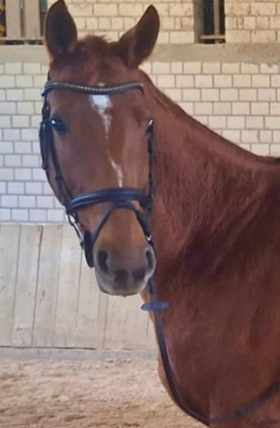 Romantina is a gentle mare with a positive overall disposition. She is front-shod, calmly goes out on rides, and has potential for jumping. She is easy to ride and moves willingly through the bit. We are looking for a truly experienced leisure rider or someone who enjoys furthering her training in the sport. Romantina is not suitable as a children's riding horse nor as a school or vaulting horse. For more information, please contact us by phone. Written inquiries will not be answered.