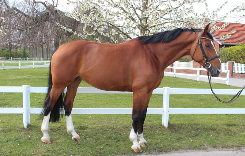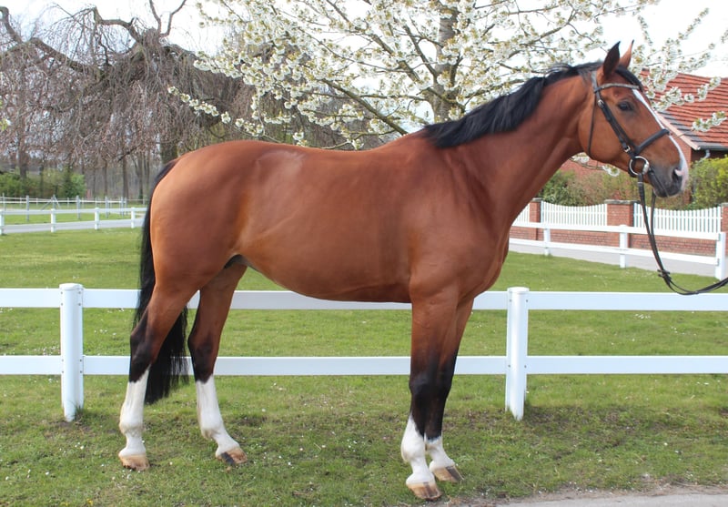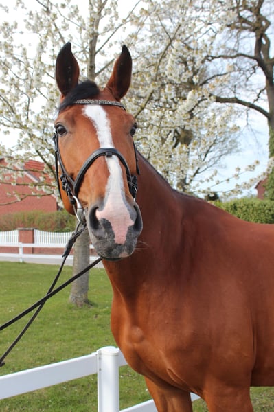 Diese tolle Stute sucht einen neuen Sportpartner. Luise ist eine neunjährige Stute. Sie hat ihre sportliche Ausbildung erst spät begonnen und würde dann schonend gefördert. Aktuell befindet sie sich auf einem sicheren A Niveau und konnte bereits erste Turniererfahrungen sammeln. In der täglichen Arbeit zeigt sie sich lernwillig, sodass sie schon in Kürze einsatzbereit für Springen der Klasse L sein wird. Luise ist einfach zu reiten und dabei ausgesprochen brav - ein ideales Pferd für Amateurreiter, die in A und L Springen erfolgreich sein wollen. Durch Ihre guten Bewegungen und ihren gleichmäßigen, schönen Sprungablauf ist sie auch eine Empfehlung für den US Huntersport. Im Umgang zeigt sich Luise lieb und ausgeglichen. die ist schmiede- und verladefromm und verträglich mit anderen Pferden. Kommen Sie gerne vorbei, um Luise kennen zu lernen. Bitte vereinbaren Sie vorab einen Termin.