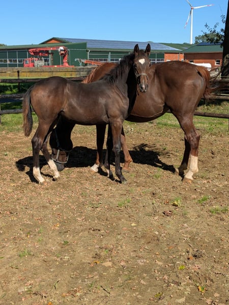 Wunderschönes Stutfohlen von Escaneno x Don Frederico geb. 30. 3. 25 Braun zu verkaufen