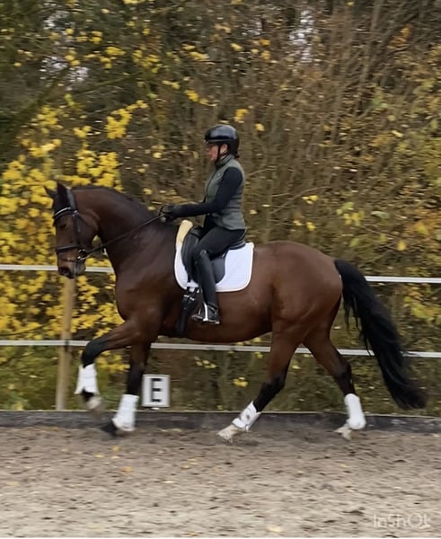 Versatile gelding with a focus on dressage and excellent trail and jumping qualities This charming gelding impresses with solid dressage training and a love for varied work. He thoroughly enjoys lunging, cavaletti exercises, and small jumps; however, he has not been further trained in jumping competitions. In the field, he proves to be sure-footed and relaxed – ideal for leisurely rides but always ready for a brisk canter. He is familiar with work on the bit and was originally approved as a double-licensed stallion for the Westphalian breeding association. Due to his previous experience, he is not suitable as a male horse or for competition; he requires a sensitive, experienced rider who appreciates his qualities. Perfectly suited for ambitious leisure riders seeking a versatile, light-ride, and sensitive horse who enjoys varied work. Note on keeping: The gelding is accustomed to daily turnout in summer and winter. We wish to continue this type of management, as it suits him very well. Video available upon request