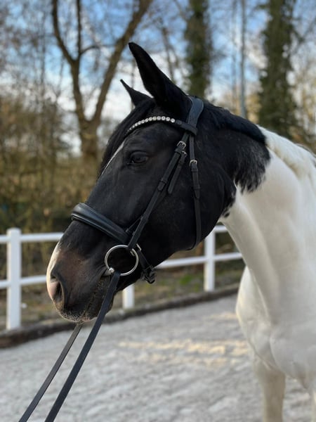 Zum Verkauf steht ein attraktiver Westfalenwallach mit besonderer Optik und guter Abstammung; Belconi (Bellissimo) x Fidermark Der 2013 geborene Schecke hat ein Stockmaß von ca. 1,73 m und ist auf L-Niveau ausgebildet. Er verfügt über drei gute Grundgangarten. Er war mehrere Jahre zuverlässig im Schulbetrieb im Einsatz, weshalb er über viel Routine verfügt. Auch kleinere Sprünge meistert er problemlos. Zudem ist er geländesicher und kennt unterschiedliche Einsatzbereiche. Er wurde ebenfalls im Voltigieren eingesetzt, sollte dies jedoch künftig nicht mehr ausüben. Charakterlich zeigt er sich zuverlässig und brav im Umgang. Unter dem Reiter ist er ehrlich – er steigt und bockt nicht, kann jedoch gelegentlich etwas „guckig“ sein, weshalb wir ihn eher für erfahrene Reiter empfehlen. Als ehemaliges Schulpferd weiß er zu schwache Reiter einzuschätzen. Für erfahrene Reiter macht er aber einen wirklich guten Job. Turniererfahrung ist vorhanden: Er konnte sich zuletzt in E- und A-Dressur platzieren. Aktuell ist er geimpft und regelmäßig entwurmt. Da er im intensiven Schulbetrieb nicht mehr glücklich ist und wir den Eindruck haben, dass ihm eine geringere Belastung und ein einzelner Bezugspartner besser entspricht, wünschen wir uns für ihn ein neues Zuhause mit abwechslungsreicher, angepasster Arbeit. Es wäre schön, wenn er bei seinem neuen Besitzer mehr Paddock oder Wiese genießen könnte. Bellagio kann jederzeit nach Absprache probegeritten werden. Standort Berlin. Video wird derzeit erstellt und kann dann angefordert werden.