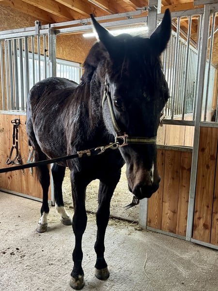 Name: Clemens Geboren: 19.04.2023 Geschlecht: Wallach Stockmaß: aktuell 165cm Rasse: Westfale Farbe: Dunkelbraun Vater: Captain Jack – überzeugt durch hervorragende Rittigkeit und ist erfolgreich bis S*** Mutter: Stute von Balou du Rouet – Siegreich bis Klasse L Beschreibung: Clemens ist ein großrahmiger, ausdrucksstarker junger Wallach mit sehr guter Abstammung und viel Präsenz. Er überzeugt durch energische, elastische Bewegungen sowie eine beeindruckende Ausstrahlung. Bereits als Fohlen wusste er zu begeistern und wurde 2023 auf der Fohlenschau mit der Goldfohlenprämie ausgezeichnet. Er ist hier geboren und aufgewachsen und kennt den familiären Hofalltag von klein auf. Clemens ist gemeinsam mit kleinen Kindern, Ponys und andern Pferden, Schleppern, Hunden, Katzen sowie Kühen groß geworden und zeigt sich im Umgang mit sämtlichen Umweltreizen absolut gelassen und unerschrocken. Im täglichen Umgang präsentiert sich Clemens brav, stets bemüht und interessiert. Ein absoluter Traumjunge, der mit seinem freundlichen, ausgeglichenen Wesen begeistert. Aktuell ist Clemens barhuf, gechipt, regelmäßig entwurmt, geimpft und wurde im April 2025 kastriert. Sonstiges: • Gegen Aufpreis kann Clemens im Frühjahr hier schonend angeritten werden • Optional besteht die Möglichkeit, ihn anschließend noch ein halbes bis ¾ Jahr gemeinsam mit seinem Kumpel auf der Weide aufwachsen zu lassen • Abgabe ausschließlich in liebevolle, erfahrene Hände Standort: 57319 Bad Berleburg