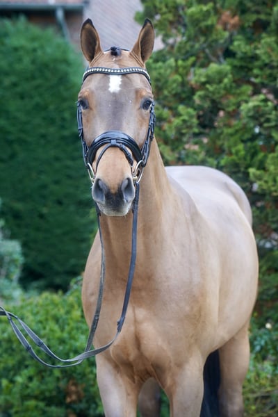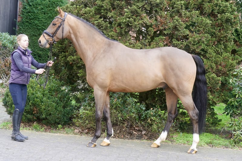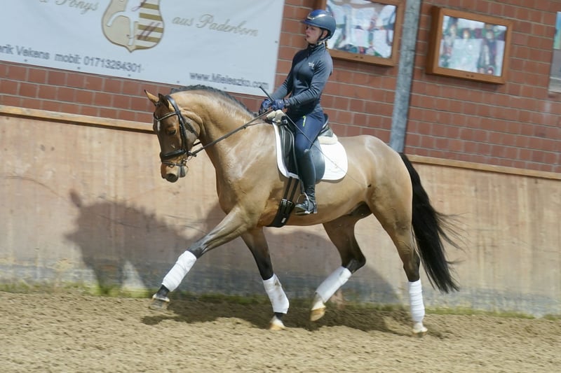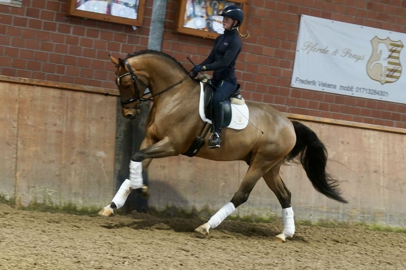 Verkaufe wunderschönen Westfalen-Wallach, geb. 2022. Das braune Pferd besticht durch sein elegantes Erscheinungsbild und sein angenehmes Temperament. Mit einem Stockmaß von 168 cm eignet er sich hervorragend für den Dressursport. Er ist gut abgeritten, sehr rittig, dazu lernwillig und zeigt viel Potenzial für den ambitionierten Reiter. Bei Interesse und weiteren Fragen stehe ich gerne zur Verfügung.