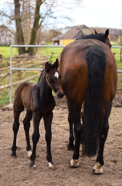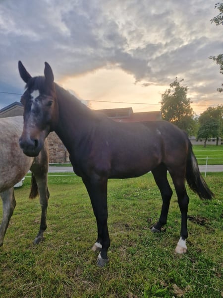 3-year-old grey gelding by Diacontinus out of a Lohengrin mare. Currently approximately 16.1 hands tall, he is unbroken and has a lower ranking in the herd. For serious inquiries, please feel free to contact us at 0151 19114212.