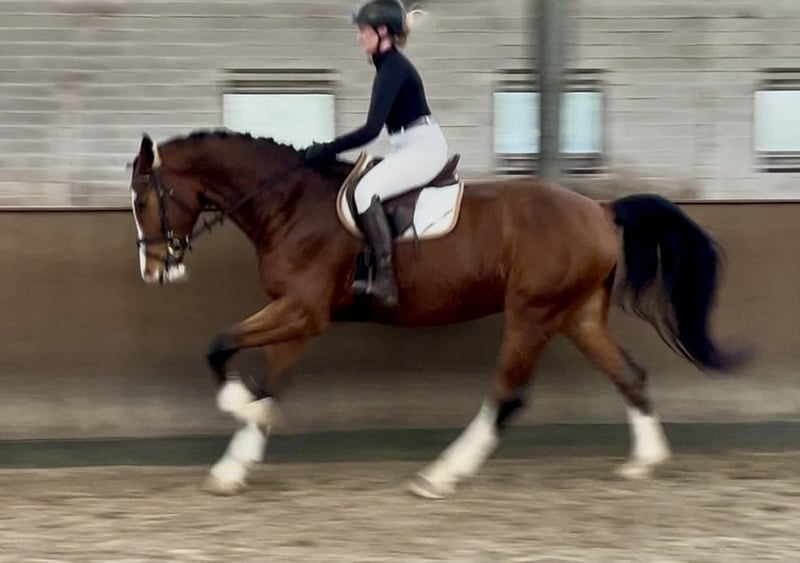 Directly from the breeder, a truly exceptional gelding is available for sale, boasting multiple outstanding attributes. His pedigree reads like a walk through the top percentages of show jumping sires. The breeding relevance of Cornet and Balou is well known, and it would be beyond the scope of this ad to elaborate further. However, his dam is also a breeding jewel of the future, as her second foal has recently been licensed and sold to France. Consequently, this gelding is the proud brother of licensed stallions on both sides of his pedigree. This overall package supports the belief that, with proper training, he can achieve great success in sport. The same promise is reflected in his performance over fences during free jumping. Careful, focused, and with surprisingly impressive strength for his age, he clears each line with ease. When working on the longe line or under saddle, he is highly attentive, motivated, and diligent. He has not yet fully developed control over his large body, as he is still young, and a few weeks under saddle will help him gain the necessary routine. His coat color, which is quite unusual for a typically straightforward Cornet son, is the perfect finishing touch on this promising package and ensures instant recognition. He has been examined radiologically with no findings and is otherwise healthy, robust, and sound. He was raised appropriately in herds on summer pastures and in open stalls during winter. He is absolutely loadable, even alone, and also shoe-friendly. He is socially compatible with other horses. His teeth have recently been checked. If interested, please feel free to contact us with any questions or to arrange a viewing appointment.