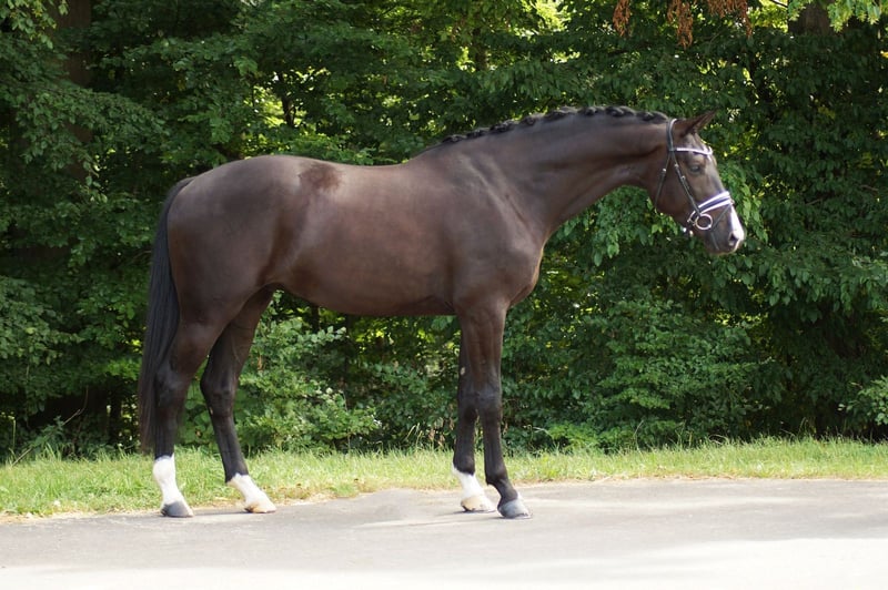 Diego is a 3-year-old gelding by Painted Black x Lord Leopold. He is equipped with three very good gaits, as well as a pronounced development of swing and impressive elasticity. His work ethic is also impeccable. His movements are large, ground-covering, and always in rhythm. Diego fills the arena with his natural presence and charisma. A promising youngster for riders looking towards competitive dressage - talented, modern, and with excellent prerequisites for the big arena.