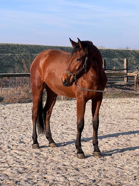 Zum Verkauf steht dieser dreijährige Wallach von A la Carte NRW × Hermes de Lux Der junge Wallach ist noch roh, ca. 168 groß, ist artgerecht in der Herde aufgewachsen und konnte sich dort altersentsprechend entwickeln. Er stammt direkt vom Züchter und wird aufgrund von Bestandsverkleinerung abgegeben. Besonders interessant: Ein Halbbruder ist bereits erfolgreich im Springen sowie in der Dressur unterwegs, was das vorhandene Potenzial dieser Abstammung unterstreicht. Ein spannendes Nachwuchspferd für Sport oder Ausbildung in fördernde Hände abzugeben. Bei Interesse freuen wir uns über eine Nachricht für weitere Informationen. 📱01742494629 Standort 46244 VB 6500