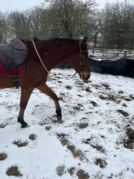 Für meinen jungen Wallach Bilbo, einen Sohn von Benicio, suche ich ein passendes neues Zuhause. Bilbo wurde über den Winter schonend und in seinem eigenen Tempo angeritten. Dabei wurde er auf dem Reitplatz in Schritt und Trab geritten, vereinzelt auch bereits angalloppiert. Er steht insgesamt noch am Anfang seiner Ausbildung und ist daher kein Pferd, mit dem man direkt aufs Turnier fahren kann. Seit Mitte Februar ist er wieder zurück am Stall und wurde aufgrund fehlender Trainingsmöglichkeiten sowie aus gesundheitlichen Gründen meinerseits überwiegend vom Boden aus gearbeitet, mal im Schritt geritten und viel spazieren geführt. Dabei ist er immer motiviert, lernwillig und macht insbesondere bei der Freiarbeit einfach Spaß. Bilbo ist ein sehr menschenbezogener, lieber junger Wallach, der mit seiner lustigen Art schnell begeistert. Er lernt neue Dinge schnell und arbeitet gern mit. So hat er zum Beispiel das Flehmen auf Kommando sehr schnell verstanden und kennt es auch, sich an der Aufstiegshilfe einparken zu lassen. Für Quatsch ist er immer zu haben, egal ob beim spielen mit einer Plastik Tüte oder einem Gymnastik Ball, er zeigt sich dabei bisher aufgeschlossen, neugierig und unerschrocken. Auch hab ich ihn schon mit zur Arbeit genommen, wo er sich ganz entspannt alles angeschaut hat. Auch im Umgang zeigt er sich angenehm. Selbst in Schreckmomenten war er bisher immer gut händelbar und hat sich noch nie losgerissen. Natürlich zeigt er weder beim Putzen noch beim Hufe auskratzen oder Mähne einsprühen irgendwelche Unarten, sondern ist auch da einfach lieb. Auch wenn mehrere Leute und Hunde um ihn rum wuseln, bringt ihn dass nicht aus der Ruhe. Er kennt Boxenhaltung, Offenstall sowie 24/7-Weidehaltung und ist außerdem hundeerprobt. Er ist regelmäßig beim Hufschmied, geimpft, war beim Zahnarzt, lässt sich auf einen Anhänger ohne Klappe gut verladen und läuft problemlos barhuf. In der Herde ist er eher rangniedrig. Bilbo durfte im alten Stall auch bereits einmal freispringen und hat dabei eine gute Figur gemacht. Er ist ein Pferd, das etwas tun möchte, seine Energie loswerden muss und Beschäftigung braucht. Ich wünsche mir daher einen Platz mit viel Bewegung, Auslauf und passender Förderung für ihn. Da er höufig noch etwas unsicher ist, braucht er einen Menschen, der ihm Sicherheit, Geduld und Ruhe gibt und ihn weiter ausbildet. Der Verkauf fällt mir nicht leicht. Er erfolgt ausschließlich, weil Bilbo mit seinem Schwung und seiner Energie ein Pferd ist, dem ich mit meinem gesundheitlichen Hintergrund langfristig nicht gerecht werden kann. Videos vom Reiten sind selbstverständlich vorhanden. Im Umkreis von 200km würde ich ihn auch in sein neues Zuhause bringen, wenn das gewünscht ist.