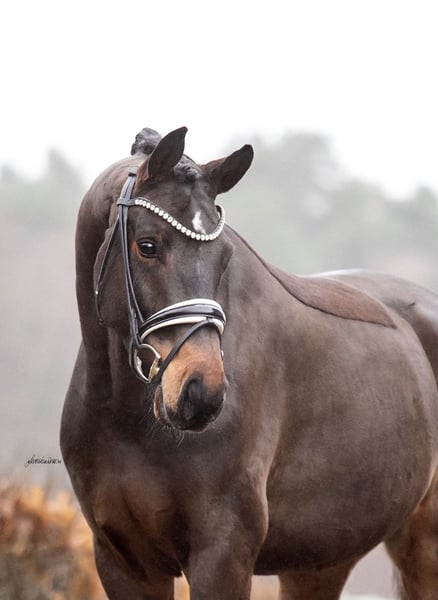 Zum Verkauf steht ein bildhübscher, im Hengsttyp stehender Wallach vom Ausnahmehengst Jovian, angepaart an eine Fürstenball-Stute aus bestem Mutterstamm! Just can‘t get enough war als Hengst in Westfalen gehört und wurde im Frühjahr 2024 angeritten! Nach einem Sieg bei seinem ersten Turnierstart durfte er nach dem kastrieren den Sommer 3-jährig nochmals auf der Wiese verbringen! Im Frühjahr 2025 wurde er wieder in Arbeit genommen & ist mittlerweile Dressurpferde L fertig! Er war bei jedem seiner Starts platziert, ist ein absolutes Verlasspferd, immer brav, zuverlässig, hat keinerlei Unarten und war nie verletzt! Er ist sehr schön zu reiten, besitzt viel Talent zur Versammlung und lernt schnell neue Lektionen! Außerdem macht er brav kleinere Sprünge unter dem Sattel, geht sehr brav alleine und in der Gruppe ins Gelände, ist unkompliziert beim Hufschmied, dem Verladen und dem Tierarzt. Er ist in Familienbesitz und seine Besitzer geben ihn schweren Herzens aus privaten Gründen ab. Er eignet sich hervorragend als Mädchen- oder Familienpferd, da er absolut zuverlässig und freundlich ist und sich trotz seines Alters schon sehr abgeklärt in allen Situationen zeigt! Die Röntgenbilder der Körung (Dezember 2023) sind vorhanden inkl. Rücken und ohne Befund. Anfragen bitte per WhatsApp: 0170/2779570