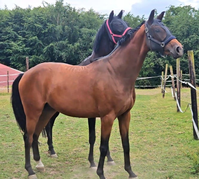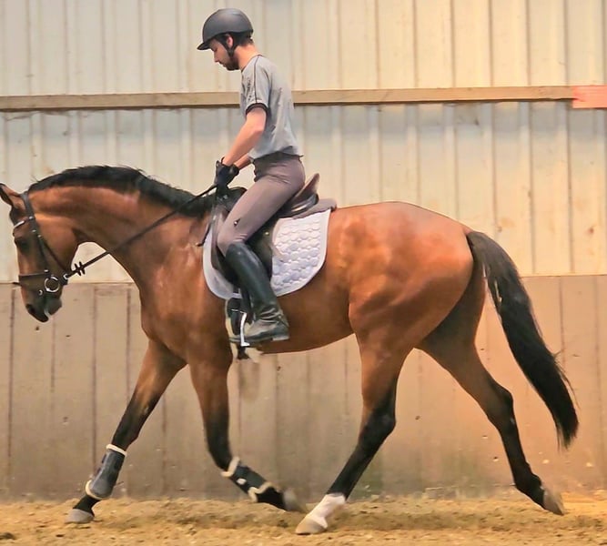 Wir bieten aus eigener Zucht einen 4 jährigen Wallach von First Deal x Don Index an. Er befindet sich gerade am Anfang seiner Ausbildung und besticht durch viel Lernbereitschaft und Vermögen. Er hat ein wahnsinns Takt und eine sehr ausgeglichene Art. Mit liebe groß gezogen zeigt er jetzt viel Talent was die Dressur angeht und vielversprechende Ansätze und ist perfekt für ambitionierte Reiter. Dieser elegante Braune Wallach besticht durch sein harmonisches Exterieur und hat ein Stockmaß von 168 cm. Er ist brav im Umgang, gut erzogen und hat ein einwandfreies Gesundheitszeugnis. Dieser Wedtfale hat das Potenzial, sich in der Dressur weiterzuentwickeln und viel Freude zu bereiten. TÜV: o.B.b. Bei Interesse oder für weitere Informationen stehen wir Ihnen gerne zur Verfügung