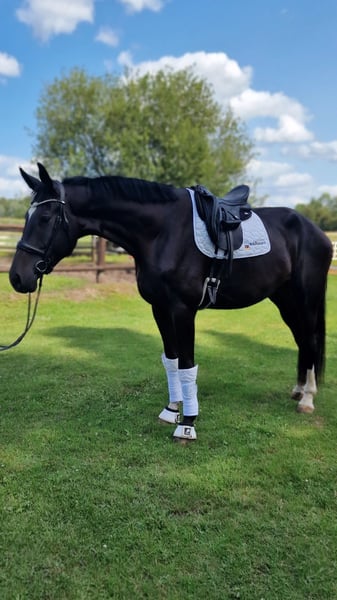 Stupendo e bellissimo figlio di Jameson RS2, un cavallo giovane da sogno con un aspetto imponente e un cuore d'oro! Giovane dotato di una meccanica del movimento eccellente e di un carattere assolutamente adorabile. È dotato di ottima qualità di base e di un atteggiamento lavorativo impeccabile, sempre desideroso di imparare. È assolutamente semplice e gentile, attualmente addestrato a un livello solido da cavallo da monta e ora pronto per i primi concorsi. Molto facile e gentile da montare, quindi assolutamente adatto agli amatori, perfetto anche per i giovani. Un cavallo da sogno per iniziare a cavalcare. Super gentile e semplice da gestire. Un giovane cavallo con un cuore d'oro e della migliore qualità.