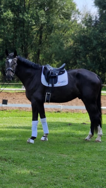 Superbe fils de Jameson RS2, un jeune cheval de rêve avec une apparence imposante et un cœur en or ! Un jeune talent doté d'une excellente mécanique de mouvement et d'un caractère absolument adorable. Il possède de très bonnes qualités de base et une excellente éthique de travail, toujours désireux d'apprendre. Il est totalement simple et bien élevé, actuellement formé à un niveau solide de cheval de loisir et prêt pour ses premières compétitions. Très facile et agréable à monter, il est donc parfaitement adapté aux amateurs, également idéal pour les jeunes. Un cheval de rêve pour commencer à monter. Très gentil et facile à manipuler. Un jeune cheval avec un cœur en or et de la meilleure qualité.