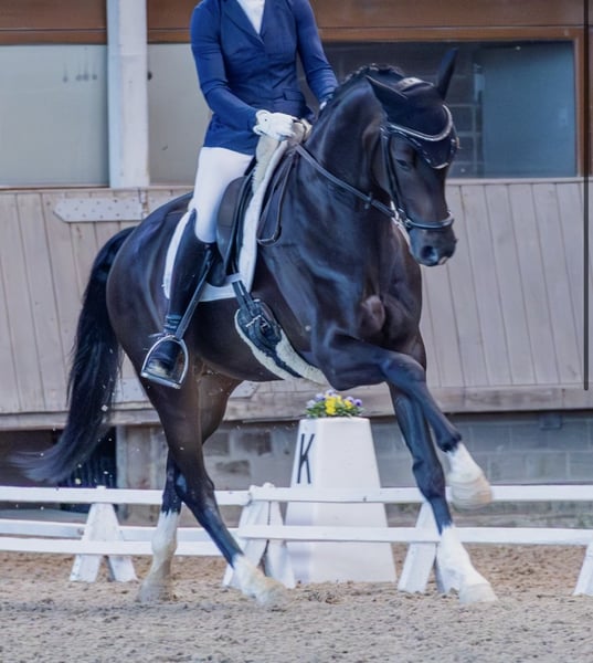 This 4-year-old gelding of medium build impresses with his great character and positive work ethic. Always clear-headed and yet equipped with the necessary go. He brings joy in dressage work but can also jump a small fence without any problems. He has won a riding horse competition and has been placed highly multiple times in dressage horse tests A. No competition start without a ribbon among the top 3. This record speaks for itself. Due to a heart murmur, he is being sold below value. Home before price! For further information, please call 0175 6480543. Please, no WhatsApp messages!