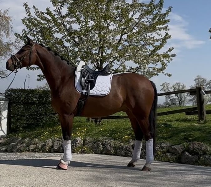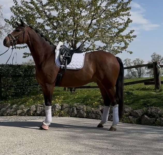 Selling a charming 5-year-old gelding by Despacito x Belissimo M. He was gently worked over the winter and is very eager to learn, always mentally alert. For more information, please feel free to contact me at +43 664 4909091.