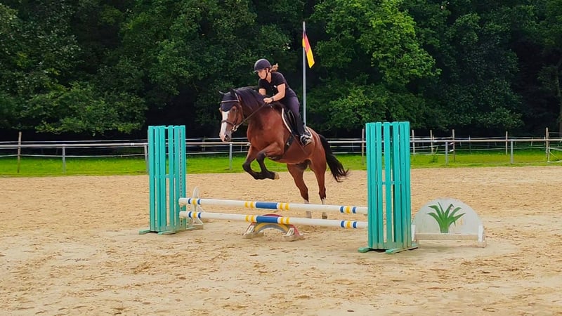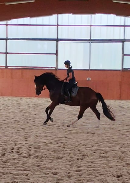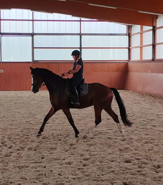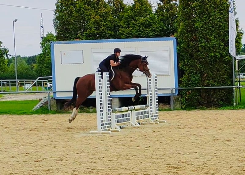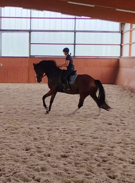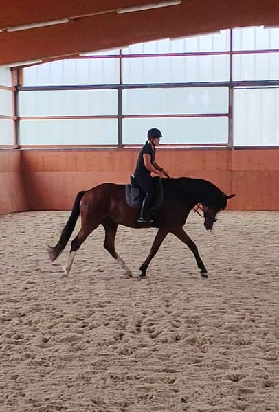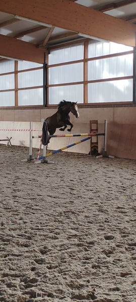 Zorro ist ein 2020 geborener Westfalen-Wallach von Zoom x Coronas mit einem Stockmaß von ca. 170 cm. Ein Pferd, das mit seiner Ausstrahlung, Lernfreude und seinem ausgeglichenen Wesen überzeugt. Ausbildung & Talent Zorro wurde vor einem Jahr schonend angeritten und dabei stets pferdegerecht gefördert. Seine Ausbildung erfolgte mit regelmäßigen Pausen, sodass er sich körperlich und mental optimal entwickeln konnte. Er ist in der Dressur sicher auf dem Niveau A** Dressur ausgebildet. Im Training wurde mit Außengalopp gestartet. Dies meistert er von Training zu Training sicherer. Beim Dressurreiten zeigt er sich fein, konzentriert und arbeitswillig. Im Springen ist Zorro solide ausgebildet – er springt niedrige Parcoure sicher und hat auch an einzelnen höheren Sprüngen bereits Spaß und Übersicht. Dabei hat er einen großen Zug zum Sprung und ist unbeeindruckt von den Hindernissen. Er kennt Platz und Halle gleichermaßen gut. Charakter & Umgang Zorro ist ein liebenswerter, unkomplizierter und unerschrockener Wallach, der im täglichen Umgang immer Freude bereitet. Er ist auf einem Bauernhof aufgewachsen und hat keine Angst vor lauten Maschinen. Unter dem Sattel zeigt er sich fein zu reiten, gehorsam, rittig und lernbegeistert. Beim Schmied und Tierarzt ist er absolut brav und gelassen. Gesundheit TÜV 3-jährig mit Röntgenbildern vorhanden Jährlich geimpft Regelmäßig entwurmt Steht in Boxenhaltung mit Weidegang Besonderheiten Zorro ist ein tolles Nachwuchspferd für ambitionierte Reiter, die ein ehrliches, motiviertes und vielseitig talentiertes Pferd suchen. Dank seiner schonenden Ausbildung und seines ausgeglichenen Wesens ist er sowohl für den weiteren Sporteinsatz als auch für den gehobenen Freizeitbereich interessant.