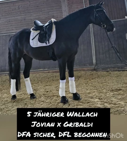 Zum Verkauf steht ein 5-jähriger, bildhübscher Jovian x Gribaldi Wallach in dunkler Jacke. Sein Stckm. beträgt ca. 1,74 m, sein Standort ist in 45549 Sprockhövel (NRW). Es liegt ein kl. TÜV o.B. aus 07/25 vor, der jederzeit eingesehen werden kann. Der Wallach ist sehr brav, unkompliziert, menschenbezogenen, verschmust und sozial mit anderen Pferden. Kennt Herdenhaltung, Gelände, Doppellonge, Kinder, Trecker uvm. Er wird nur in beste Hände als gehobenes Freizeitpferd verkauft. Der Preis liegt bei 18.000 und ist verhandelbar. Es gilt Platz vor Preis! Für weitere Infos, Videos etc. gerne kontaktieren.