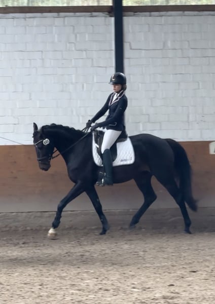 Ultra is a gelding to fall in love with. Affectionate, curious, light-footed, and motivated, he always shows his best side. His brother from the same mother is currently successful in M-level show jumping. He is an intelligent horse that loves to be cuddled and spoiled. He enjoys walks, petting, and likes children. When riding, he is light-footed and calm. He is easy to ride through the neck. He is currently making his first jumps under saddle. He has already placed highly in various competitions in rider classes and is familiar with both outdoor and indoor tournaments. He can be tried out for riding. Like all offspring of United Way, he is tough and eager to perform. Trade possible!!