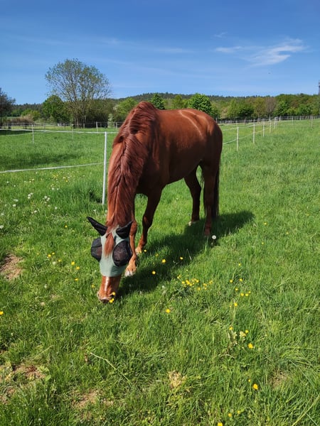 Valdancio ist ein modern gebauter Fuchswallach. In diesem Jahr 6 werdend stehen ihm alle Türen offen. Er zeichnet sich durch sehr gute Rittigkeit aus, sobald man sein Herz für sich gewinnen konnte. Anfangs testet er altersbedingt, wobei man dabei immer über seine Ideen schmunzeln muss. Neben der Dressurarbeit ( hier ist sein Galopp besonders hervorzuheben) kennt er Freispringen, Bodenarbeit, Trail und Ausritte. Ich wünsche mir für ihn einen ambitionierten Reiter, bei dem er die Nummer eins sein kann. Auf Wunsch gerne mit Zubehör