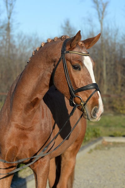 Ein vielversprechendes Nachwuchspferd mit besonders auffälliger Farbgebung, das nicht nur optisch begeistert sondern auch mit drei guten Grundgangarten überzeugt. Der Wallach zeigt sich unkompliziert im Umgang, stets menschenbezogen und lernwillig – ein idealer Partner für ambitionierten Reiter ebenso wie für die weitere sportliche Ausbildung. Video ohne Eisen