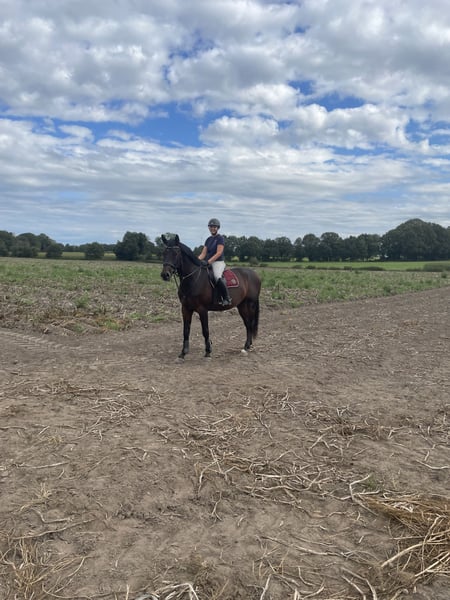 Schweren Herzens suchen wir für unseren lieben Carl („Carlchen“) ein neues Zuhause aufgrund von Zeitmangel. Carl ist 6 Jahre alt und hat ein Stockmaß von ca. 177 cm. Er ist ein beeindruckender, großrahmiger Wallach mit einem sehr freundlichen Wesen. Im täglichen Umgang zeigt er sich stets lieb, menschenbezogen und unkompliziert. Altersbedingt kann er sich in neuen Situationen natürlich auch mal erschrecken, bleibt dabei aber gut händelbar. Er ist sowohl die Weidehaltung in der Herde als auch zu zweit gewohnt und bringt vom Charakter alles mit, um auch in einem Offenstall glücklich zu sein. Carl ist ein tolles Pferd für den erfahrenen Freizeitreiter, der Freude an einem jungen Pferd hat und ihm Sicherheit geben kann. Bei ihm wurde 2024 Arthrose diagnostiziert. Der Befund hat keine Auswirkungen auf das tägliche Reiten. Dennoch sollte er nicht im Springsport eingesetzt werden – leichte Gymnastiksprünge sind jedoch problemlos möglich. Er wird daher als Freizeitpartner abgegeben. Wir wünschen uns für Carl ein liebevolles Zuhause, in dem er gefördert, aber nicht überfordert wird und einfach Pferd sein darf. Bei ernsthaftem Interesse freuen wir uns über eine Nachricht per WhatsApp.