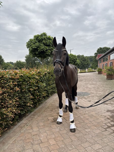 For sale is a 6-year-old tall gelding with an impressive pedigree: Escolar x Sommerhit (by Sandro Hit) Height: approx. 1.80 m Training level: Dressage horse L Achievements: Won dressage horse A and placed multiple times Character: Willing to perform, eager to learn, and with a lot of presence Quality: Outstanding basic gaits with great potential for high-level sport This talented young horse has everything needed for a successful future in the dressage arena – ideal for further training and starting under saddle. Only available due to time constraints. If interested or for more information/videos, please feel free to get in touch.