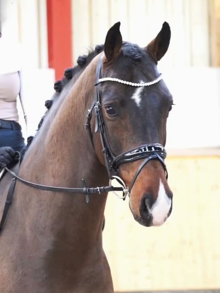 Flacon is a stunning son of For Romance. He was licensed in 2022/23 at the Westphalian Stallion Licensing and now leads an active life as a gelding. Under saddle, he impresses with his quality, rideability, and a very positive attitude towards work. Currently, he comfortably performs at Medium level in dressage and is being gently introduced to S-level movements. A very typey, expressive gelding who leaves no wishes unfulfilled. In daily handling and within the herd, he is absolutely well-behaved, uncomplicated, and reliable. No emails, only phone calls. Price plus VAT. Information without guarantee.