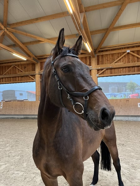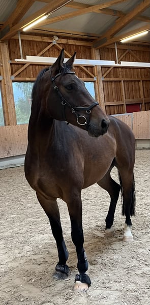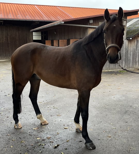With a heavy heart, I am offering my 7-year-old gelding Carl, by Cordynox x Landadel, for sale. Carl has been in my possession for three years and has been gently started under saddle by a professional rider during this time, after which I took over his further training. He is a very rideable horse with a lot of energy and great talent for jumping, which makes him enjoyable right from the start. He is also very well-behaved in the field and can go out alone from the stable. Due to his size and good musculature, he can accommodate larger riders well. Carl wants and needs to be challenged, which makes him very interesting for sport-oriented riders. Unfortunately, I can no longer meet these requirements as I should with a small baby. Therefore, I am looking for a nice place for him where he can show his full potential. Carl is in excellent health, has good shoeing and loading manners. He currently goes out to the pasture with the herd daily and is very compatible with others. Due to my pregnancy last year, Carl has not yet been presented at any competitions and has not jumped during this time. Pictures will follow. If interested, I can also gladly send videos. Please feel free to contact me for further information.