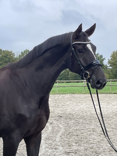 Zum Verkauf steht dieser sechsjährige Wallach von Finnigan aus einer Damon Hill Mutter in begehrter Dunkelfuchsjacke direkt vom Züchter. Aus dem direkten Mutterstamm sind bereits Grand Prix Pferde hervorgegangen. Die Mutter Donna Castania ist auch Großmutter zum Bundeschampion For Real. Wie all unsere Verkaufspferde ist dieser sympathische Wallach bei uns geboren und wurde aufgrund seiner Größe vierjährig angeritten und schonend aufgebaut. Finni zeichnet sich durch seine hervorragende Rittigkeit mit angenehmem Vorwärtsgo und leichter Anlehnung aus. Er ist ein grundehrliches, sensibles Pferd, welches einen gefühlvollen Reiter mit Spaß an der dressurmäßigen Arbeit sucht. Bei weiteren Fragen melden sie sich gerne telefonisch unter 0170 7741957.