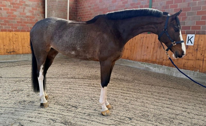 Inquiries should only be made via phone or WhatsApp at +49 151 17665701. For sale is this 7-year-old gelding by Cabrio van the Heffink. He stands 16.1 hh and has currently achieved placements up to 1.20 m in competitions. He is a horse with plenty of blood and scope for jumping. Never spooky at the jump and 100% honest, but he can sometimes be a bit sensitive to his environment and a bit spooky. Therefore, he is not an ideal horse for amateurs. A skilled rider will surely find him to be a high-level sport horse. Current veterinary certificate available. Videos can be sent upon request. Due to riding tourism, we charge €30 for a trial ride, which will be deducted from the purchase price. For straightforward buyers, the price is negotiable.
