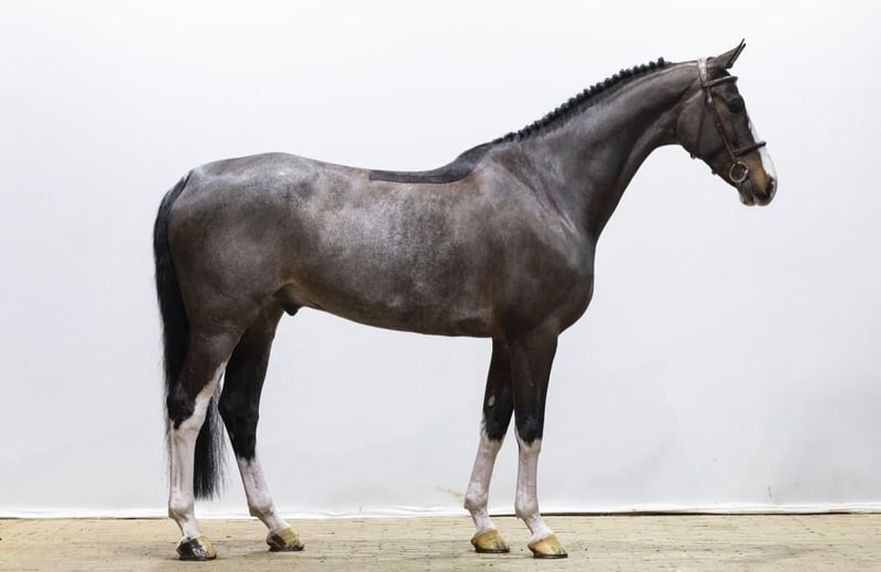 7-jarig gekleurd springpaard, tot M-dressuur geplaatst