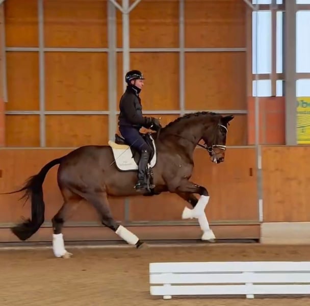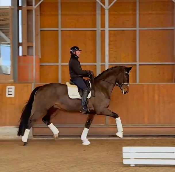 Schorsch ist ein 2018 geborener Wallach von Secret mit einem Stockmaß von ca. 172 cm. Er ist bereits M*-siegreich und befindet sich aktuell auf dem Weg in die Klasse S. Er überzeugt mit seiner unkomplizierten Art und lässt sich angenehm und einfach reiten. Im Viereck zeigt er sich verlässlich, konzentriert und stets gelassen. Dabei punktet er besonders mit seinem ausgeglichenen, entspannten Charakter und seiner positiven Arbeitseinstellung. Schorsch ist ein sympathischer Dressurpartner mit klarer Perspektive für den weiteren sportlichen Weg und eignet sich sowohl für ambitionierte Amateure als auch für Reiter mit höheren Zielen.