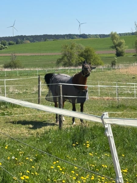 Verkaufe elegante Württemberger Stute – Ideal für die Freizeit! Diese schöne braune Stute wurde im Jahr 2011 geboren und überzeugt durch ihr freundliches Wesen und ihre Vielseitigkeit. Mit einem Stockmaß von 165 cm bietet sie die perfekte Größe für abwechslungsreiche Freizeitaktivitäten. Ob ausgedehnte Ausritte, Spaziergänge oder entspannte Stunden im Gelände – sie ist zuverlässig , im Umgang beim Reiten wirklich ein Traum. Sie ist gesund, gepflegt und bereit für neue Abenteuer mit einer liebevollen Bezugsperson. Leider hat Conny durch den Springsport bedingt vorne links zwei operierte Fesselträgerschäden, sowie vorne Belastungsrehe. Bei Interesse und für weitere Informationen stehe ich gerne zur Verfügung. Sie wird nicht wieder in den Springsport verkauft. Ebenso bitte nicht zu kleinen Kinder, da ist das Gras einfach interessanter. Ich denke durch den Stress hat sie einen Sattelzwang entwickelt, da sie durchaus mal schnappen kann, wenn der Sattel zu schnell kommt oder man zu schnell beim putzen ist, wobei man dies mit Geduld, nochmal Geduld und viel Verständnis wieder in den Griff bekommt. Es gilt Platz vor Preis. Da ich für Conny nur das Zuhause suche, was sie sich in Ihrem Leben verdient hat.