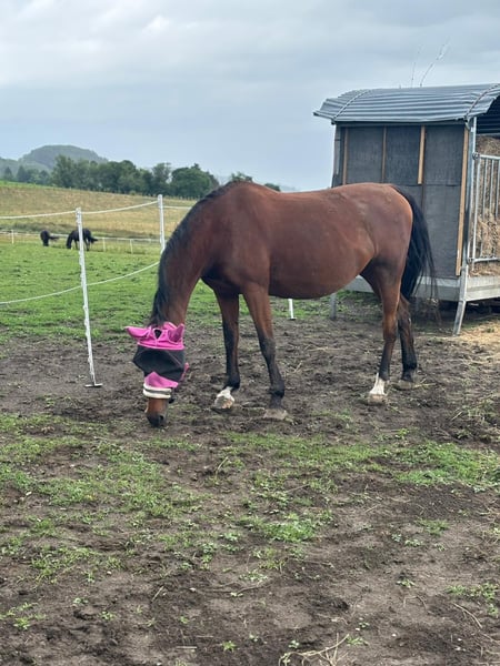 Elegant Württemberger mare for sale – perfect for leisure riding! This beautiful chestnut mare was born in 2011 and impresses with her friendly nature and versatility. Standing at 16.1 hh, she offers an ideal size for a variety of recreational activities. Whether for long rides, walks, or relaxed outings in the countryside – she is reliable and a true pleasure to handle and ride. She is healthy, well-cared for, and ready for new adventures with a loving owner. Unfortunately, Conny has sustained two operated suspensory ligament injuries in her front left leg and has experienced front limb laminitis due to her jumping career. If interested and for further information, I am happy to provide details. She will not be sold back into show jumping. Likewise, she is not suitable for very young children, as grass tends to be more interesting for her. I believe she has developed a saddle-related issue due to stress, as she may nip if the saddle is put on too quickly or if grooming is rushed. However, with patience, understanding, and gentle handling, this can be managed and improved. Price is secondary; I am only looking for a home where she can receive the love and care she deserves.