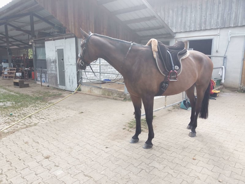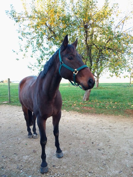 Biete meinen Württemberger Wallach zum Verkauf an. (Er ist seit 02.2014 in meinem Besitz) Tolles und zuverlässiges Dressur + Freizeitpferd. Der Wallach hat sehr schwungvolle raumgreifende GGA's ist dressurmäßig bis M ausgebildet aber seit knapp 8Monaten nicht mehr im Training.(Keine Zeit meinerseits) Er ist Geländesicher egal ob alleine oder in der Gruppe, ist immer händelbar kein Steiger oder buckler (ein Freudensprung kann aber im Gelände schonmal vorkommen) Er wird aufgrund von Zeitmangel verkauft. Probereiten ist auf einer Reitwiese bei trockenem Wetter mgl oder im Gelände. Auf Wunsch kann das Zubehör mit verkauft werden. Der Wallach wird wegen kleinem Mangel weit unter Wert verkauft genaueres per PN. Ein Probereiten wird nur bei ernsthaftem Kaufinteresse gegen eine Gebühr von 25€ stattfinden. (Wird beim Kauf dann verrechnet).