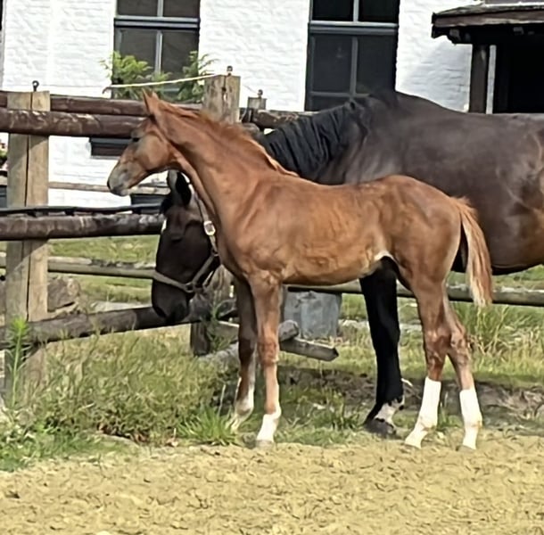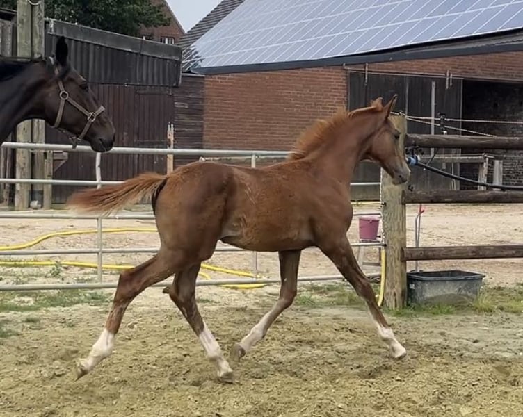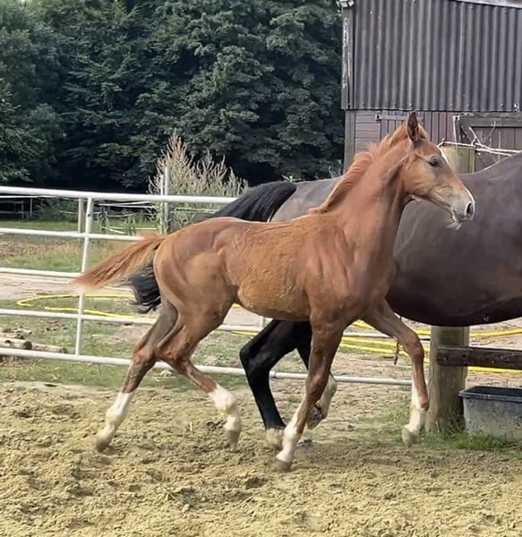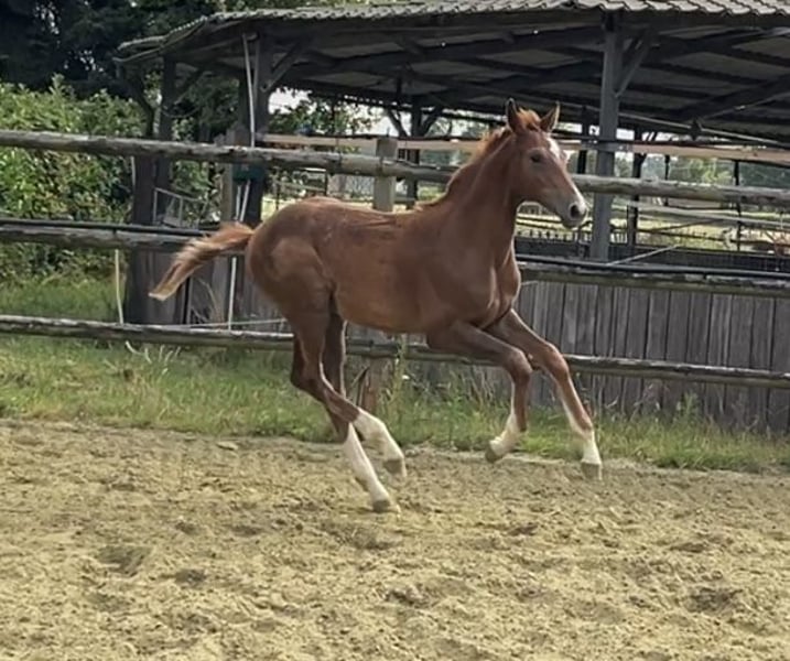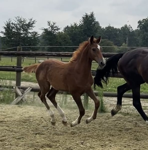 Jackson MK ist am 02.04.25 geboren und will nicht nur körperlich groß werden! Er ist nicht nur äußerst hübsch, sondern steht auch auf einem unglaublich stimmigen und gutem Fundament. Er lernt sehr schnell ist neugierig und zugänglich. Seine Mutter ist eine großrahmige Stute mit einem Stockmaß von 1,76m und viel Talent am Sprung. In diese Fußstapfen will er rein.