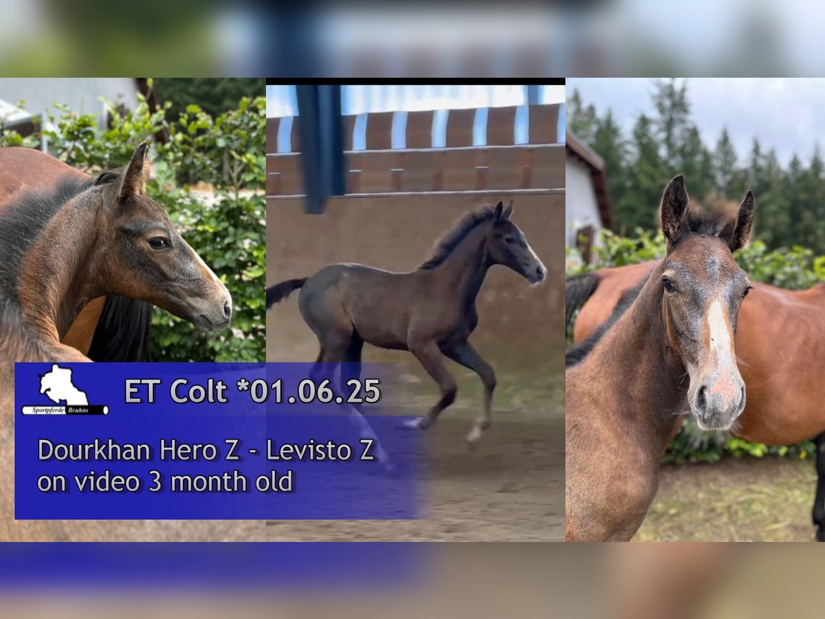 Oferujemy tutaj prawdopodobnie ostatniego ogierka z naszej najlepszej matki hodowlanej Lene. Córka Lene, "Call me Princess", odnosiła sukcesy na poziomie 1,60 m (S*****) i dwukrotnie startowała pod turecką flagą na Mistrzostwach Europy. Wnuczka Lene, "Great Princess", osiągała sukcesy na poziomie 1,55 m i brała udział w Mistrzostwach Niemiec oraz zawodach Pucharu Świata w skokach. Do tego dołączają kolejne konie z tego udanego linii matczynej, startujące na poziomie 1,40 m i wyżej. Ojcem źrebięcia jest Dourkhan Hero Z, obecnie bardzo ceniony i już odnoszący sukcesy na poziomie 1,60 m (m.in. Grand Prix Hamburg). Dziadkiem matki źrebięcia jest Levisto Z, który również startował na poziomie 1,60 m i jest znany z produkcji wysokiej klasy koni skokowych. Same źrebię, jak widać na zdjęciach i filmach, jest bardzo atletycznym i typowym ogierkiem, którego przyszłość z niecierpliwością śledzimy.