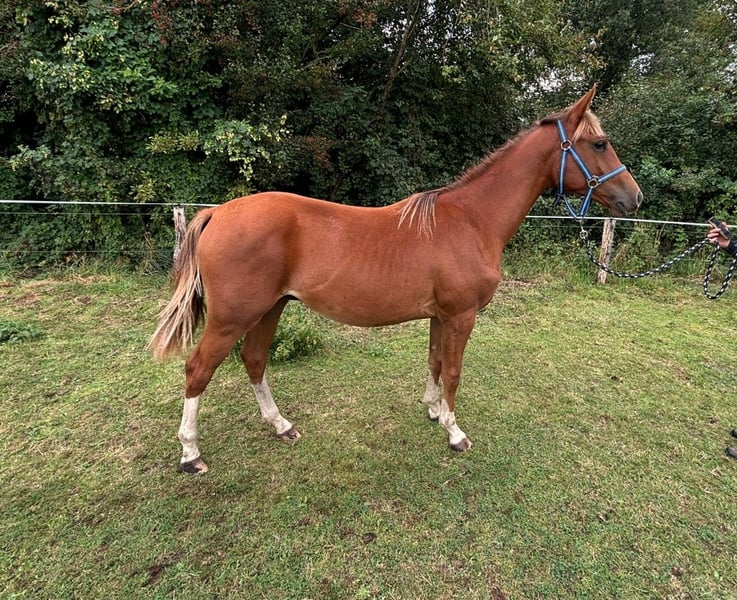 **Sales Advertisement for Zangersheider Stallion** For sale is a promising Zangersheider stallion, born in 2024. This beautiful chestnut captivates with his charming character and excellent pedigree. If you are interested or have any further questions, please feel free to contact me. Viewings are possible by appointment. Take the opportunity to get to know this young horse!