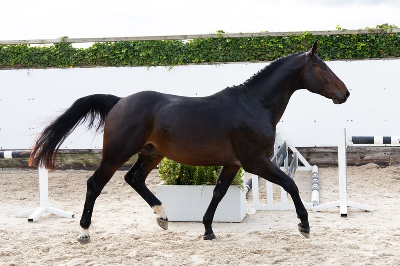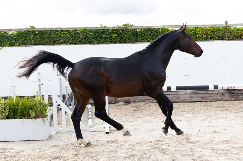 The three-year-old Ever So Clever VK Z is a beautiful dark bay with a good hindleg technique over fences. Sire Emerald van ’t Ruytershof went through an impressive career under Harrie Smolders and has produced a great amount of Grand Prix horses. Eleven of them are even placed at 1.65m to 1.70m level, including Igor, Jaguar van de Berghoeve, Mandato van de Neerheide and Nikka vd Bisschop. Dam Tiptop Van Het Schaeck (Taloubet Z x Erco van ’t Roosakker) competed internationally at 1.45m level with Kelly van Wijk. She is a half-sister to the eight-year-old approved stallion Lotto Indebus Z (1.45m level with Gilles van Hamme and now 1.35m level with Harold Megahey). This line traces back to Sauterelle de la Pomme, dam of the World Cup stallion Vagabond de la Pomme and daughter of Narcotique de Muze II (1.60m Grand Prix). https://youhorse.auction/en/auction/Ever-so-Clever-VK-Z-EMERALD-VAN-T-RUYTERSHOF-x-TALOUBET-Z